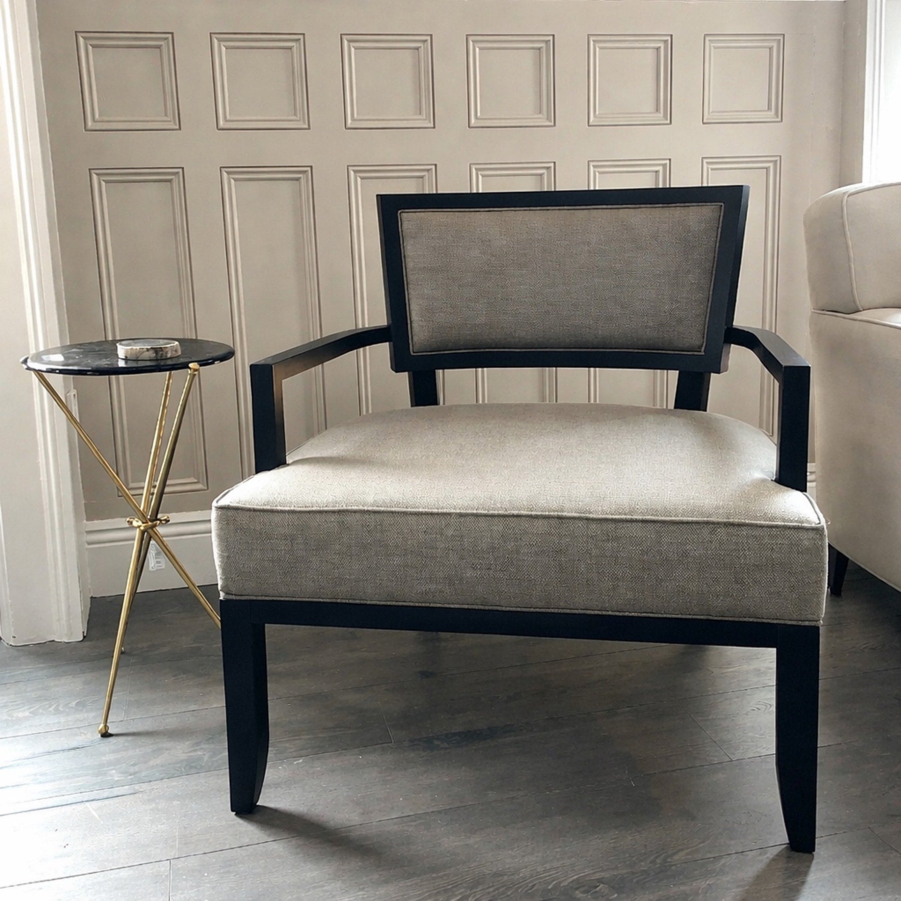 Bespoke Upholstered Armchair with Black Frame - Sutherland Interiors